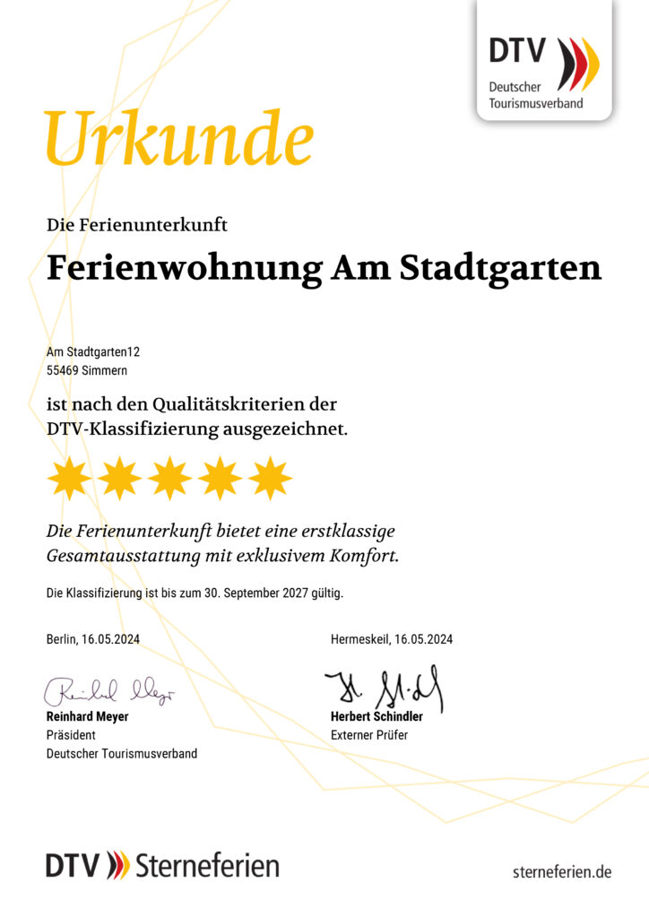 DTV-Klassifizierung Eintrag in der DTV Datenbank: sterneferien.deWeitere Informationen zu dieser Klassifizierung: DTV Bericht